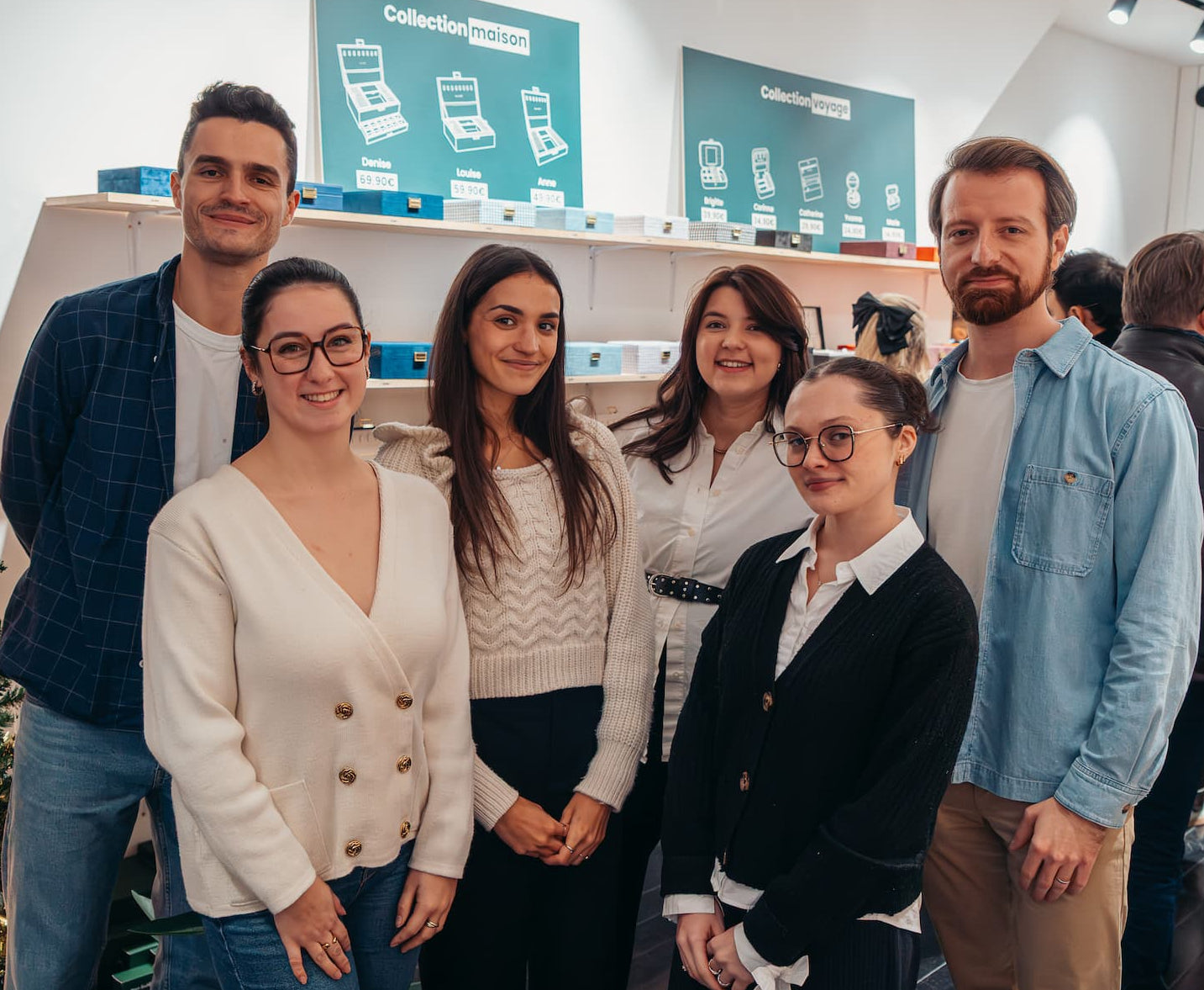 Une joyeuse équipe de 8 personnes basée à Lille : Laura, Margaux, Louise, Edwige, Alice, Ninon, Louis et Benjamin qui œuvre au quotidien pour confectionner des boîtes à bijoux jolies, fonctionnelles et accessibles. Afin de vous permettre de chouchouter vos bijoux ! ❤️