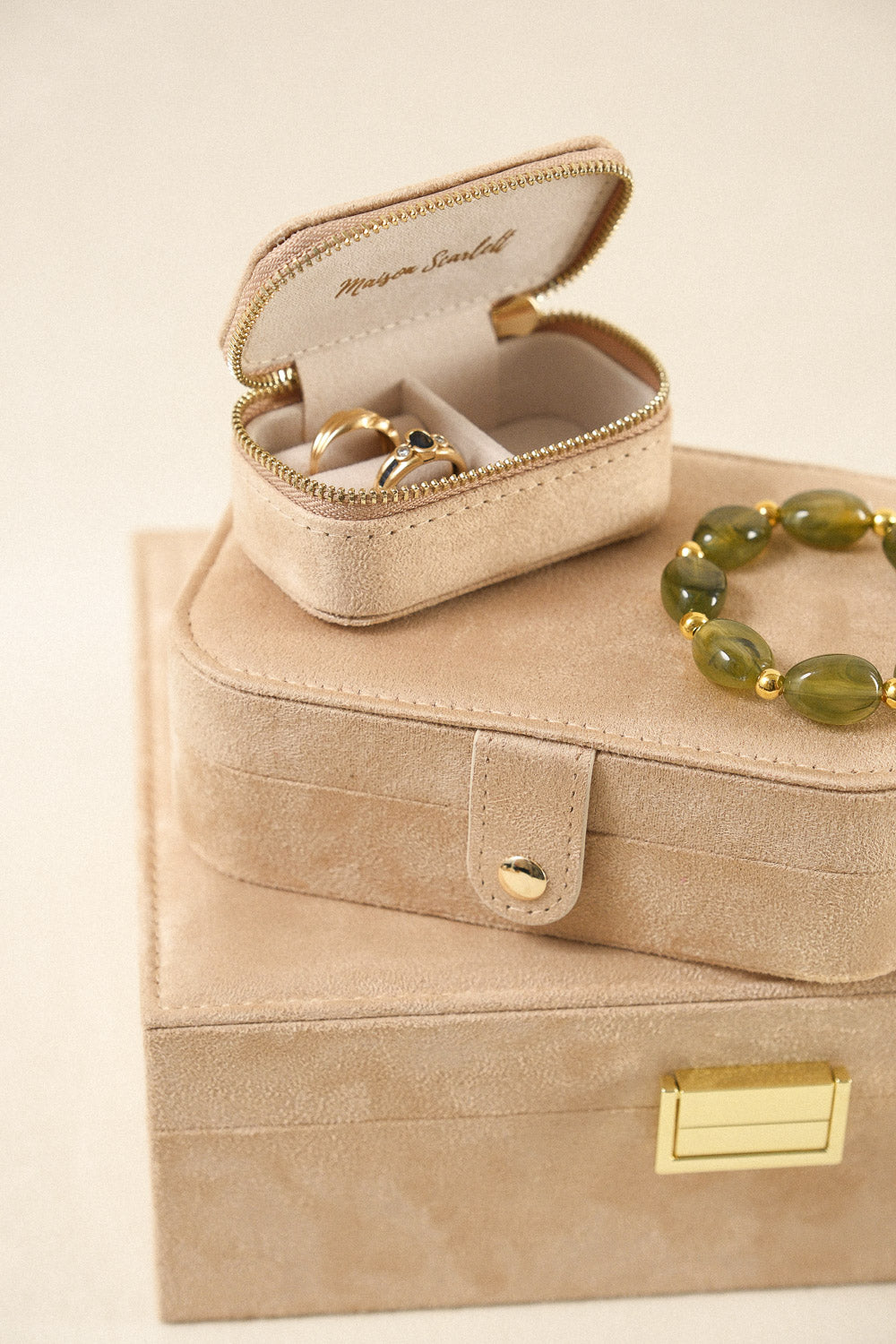 Tous nos modèles sont déclinés dans tous les matériaux. Ce qui vous permet d'assortir votre boîte à bijoux à votre boîte ou pochette à bijoux de voyage.