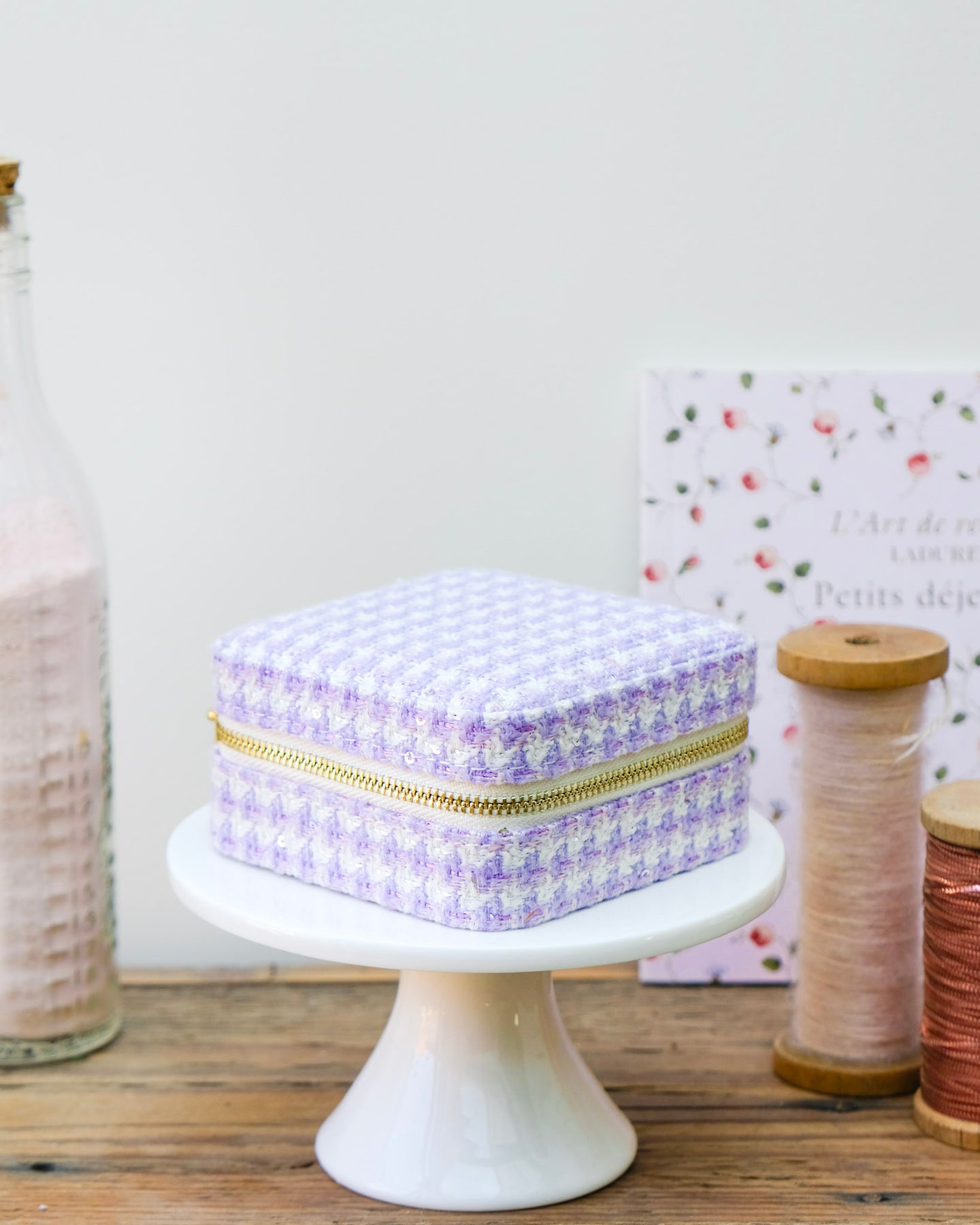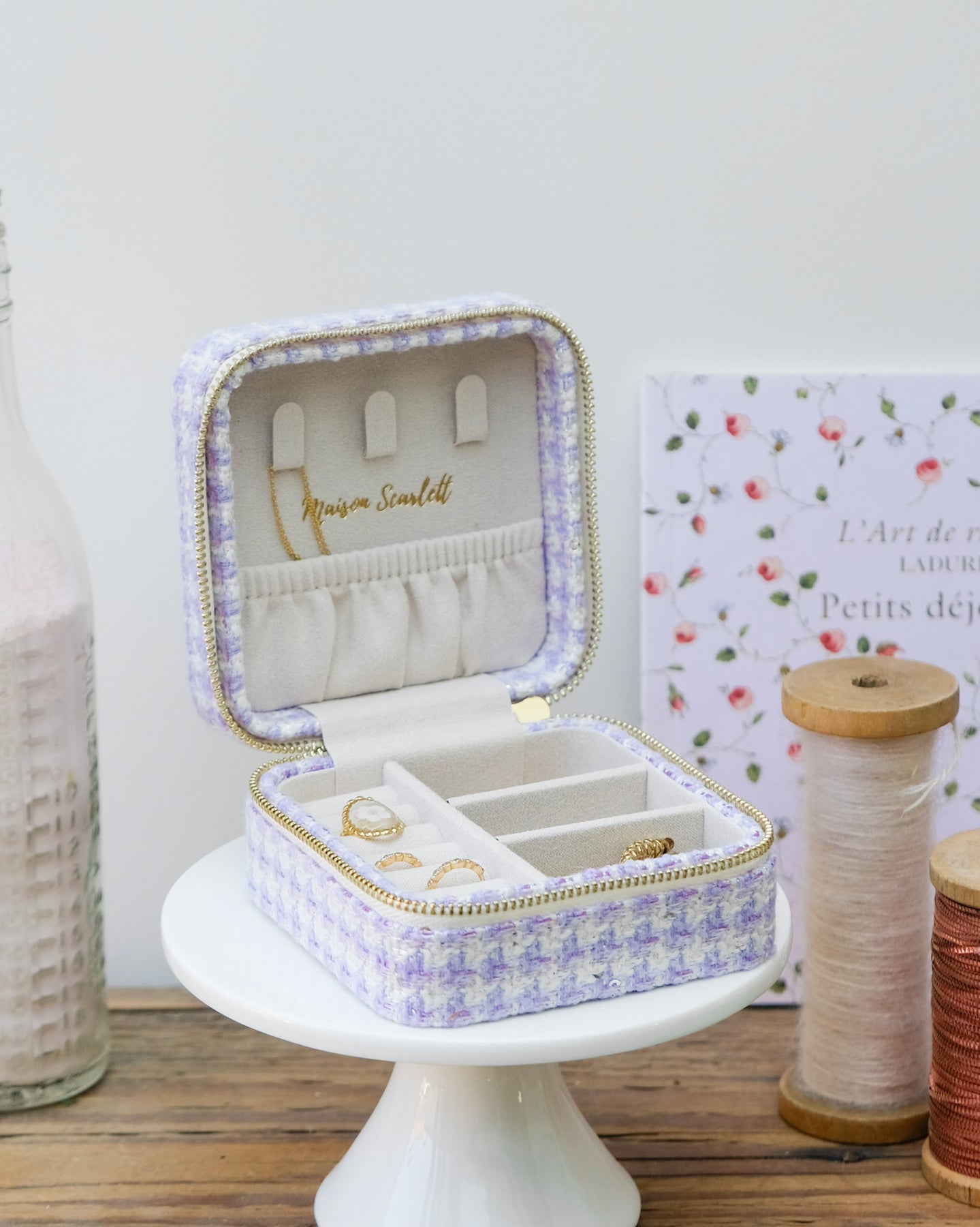 La boîte à bijoux Corinne en pied de poule en détails :