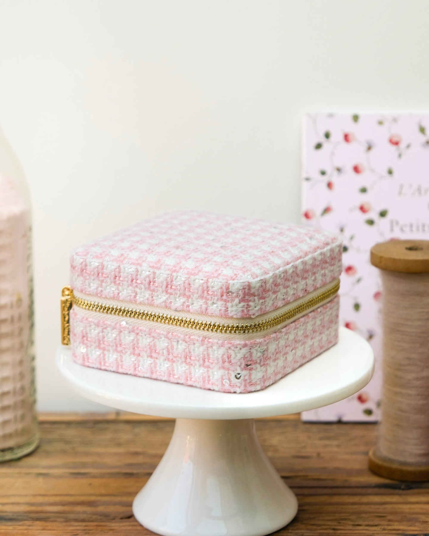 Boîte à bijoux de voyage Corinne en pied-de-poule