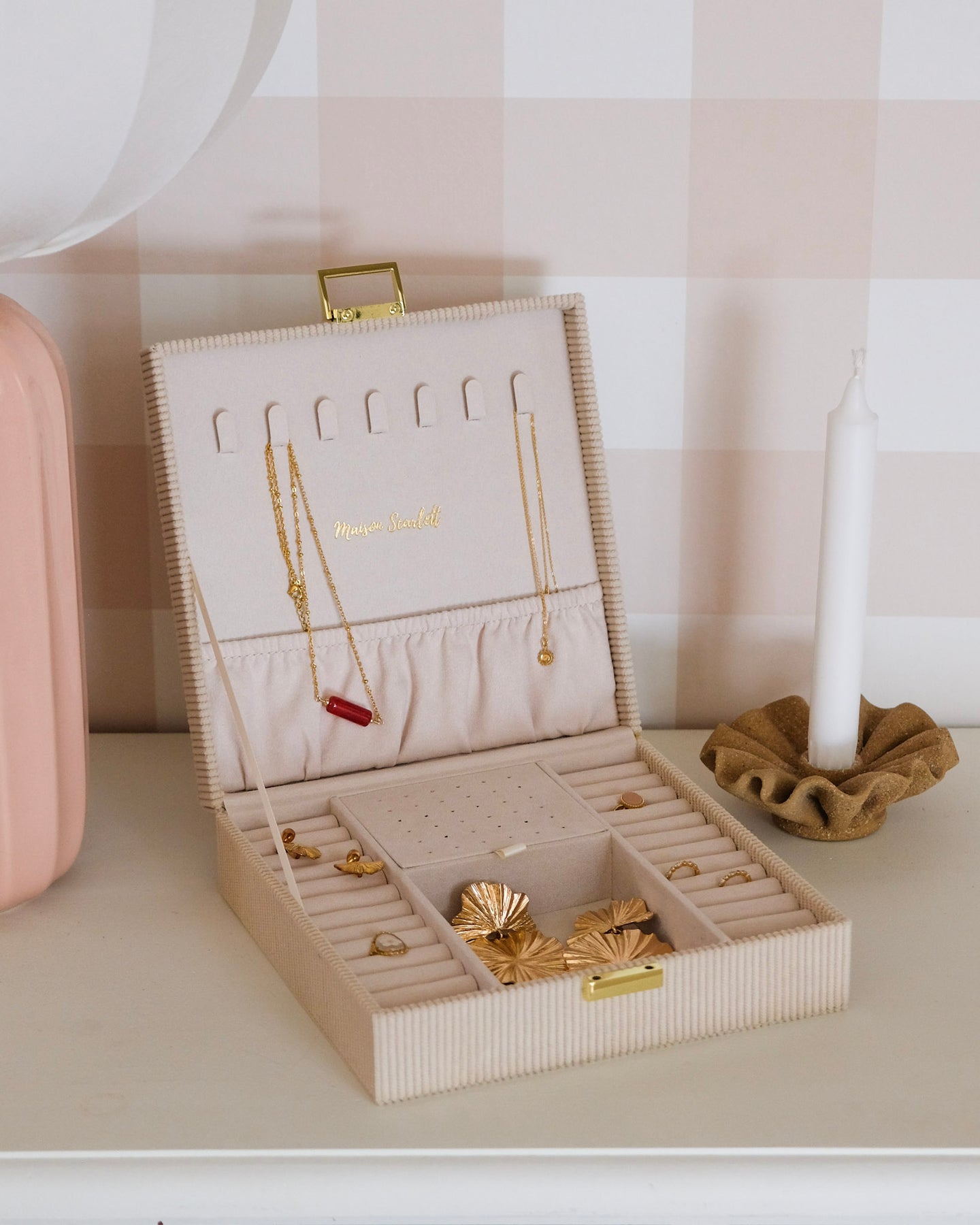 La boîte à bijoux Anne en velours côtelé en détails :