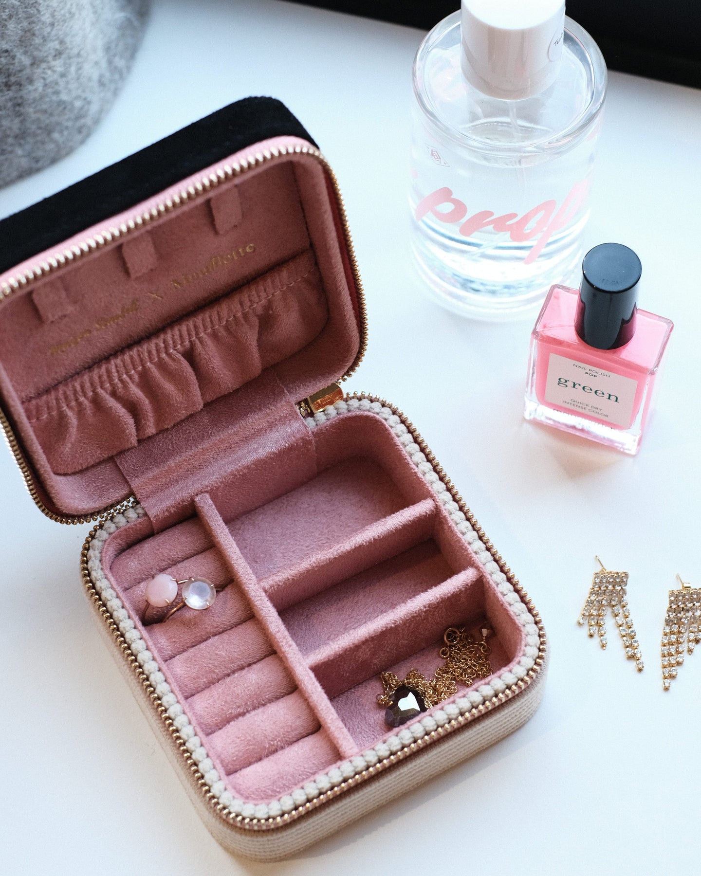 Un weekend en perspective ? Emportez vos bijoux préférés grâce à notre boîte à bijoux de voyage Corinne en velours à la fois compacte et d’une grande capacité.